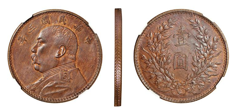 民国三年袁世凯像壹圆银币红铜质样币/NGC-ACAB MS62
